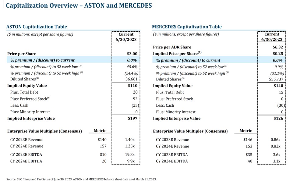 In this transaction, the initial implied premium was agreed upon in early July 2023, based on the relative enterprise values as of June 30, 2023: